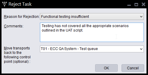 The rejection will automatically lock all associated transport forms in the location where the rejection is processed.