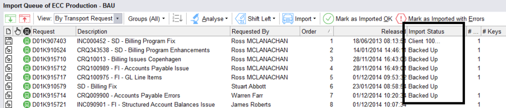 Only the Transports waiting in an import queue can be imported by Transport Expresso. Once approved and waiting in an import queue TE will: