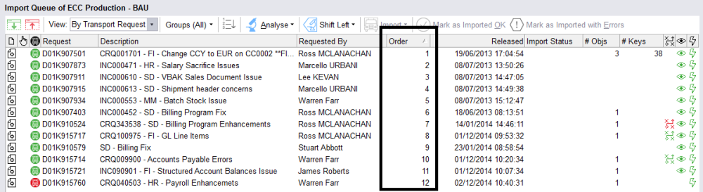 3. If the target system has been configured to import in the same sequence as a preceding system this will also override the release order. For example, regression systems are set to follow the same import sequence as test systems and production systems will follow the same import sequence as regression systems.