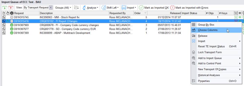 2. Use the ‘Order’ column. If this is not shown by default, highlight the required import queue and select “Choose Columns”: