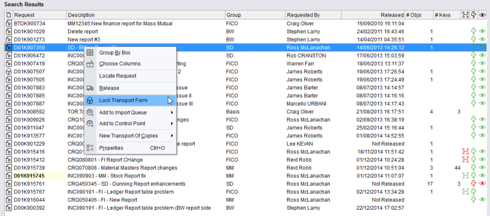 In order to find the transport in the relevant location in TE you can right-click and use the Locate Request option to take you directly to where the transport is awaiting approval or import: