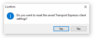 2. Keep SHIFT and CTRL held down and you will be shown a popup asking if you want to reset your Transport Expresso client settings.