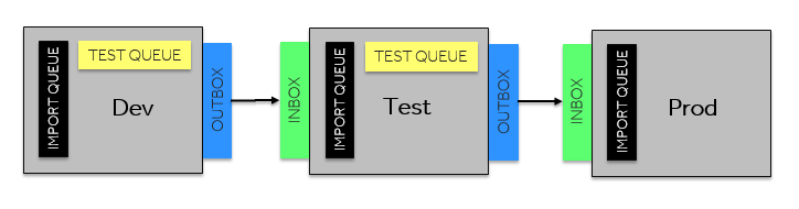 When a transport is successfully imported, it will move to the Outbox of the current system (or Test Queue if one is configured). If there is no Test Queue or Outbox, it will move to the Inbox of the system or systems following the current system. When there are no more control points or import queues in the path the transport is complete.