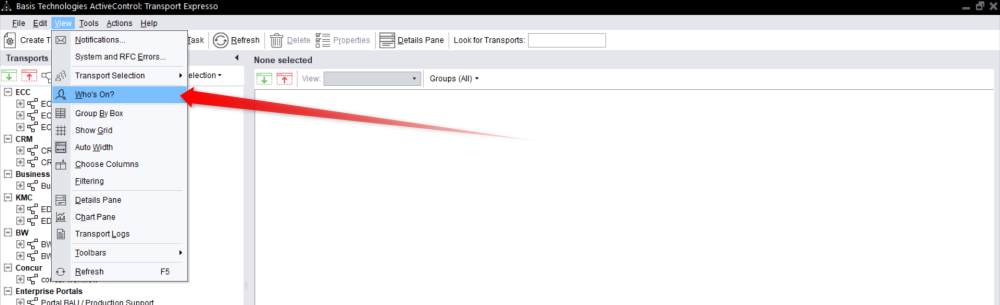 It is possible to find out who’s currently logged on to ActiveControl Windows GUI by using the Who’s On? option: