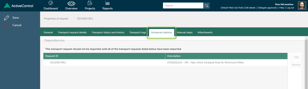 Dependencies can also be manually set between Transports. This is useful if transports have been released in the wrong order and you want to force ActiveControl to import them in a specific order – or in the more common scenario – where you want to set cross system dependencies between transports. For example, when a BW transport has to be imported only after a specific ECC transport has been imported.
