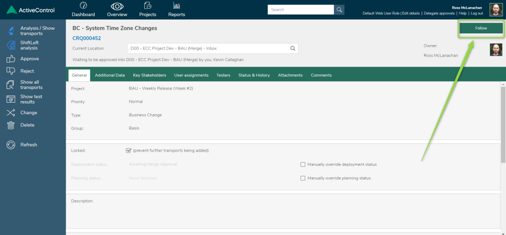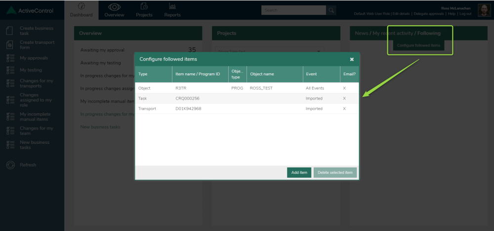 Within the Web UI, it is possible to follow Business Tasks, Transports or SAP Objects that are of specific interest to you.