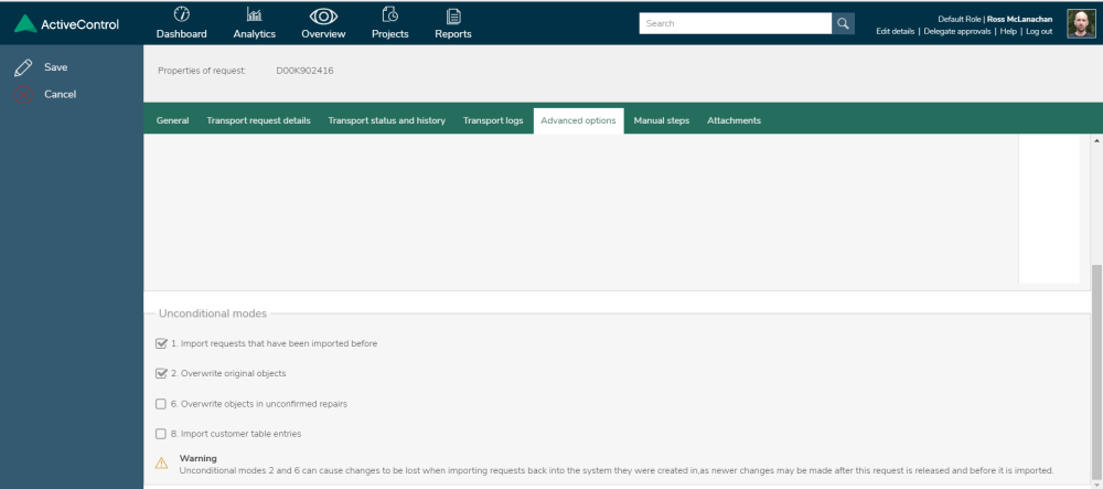 If required, specific Unconditional modes can be set for a specific transport in ActiveControl.