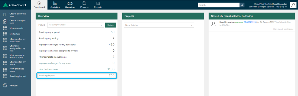 Figure: ‘Awaiting Import’ metric on the ActiveControl Web UI main screen.