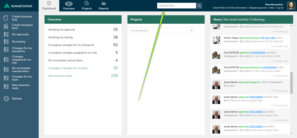 It is possible to search for existing Transport Forms via the Search field at the top of the Web UI. You can search for either a Transport Number or a Business Task reference via this function.