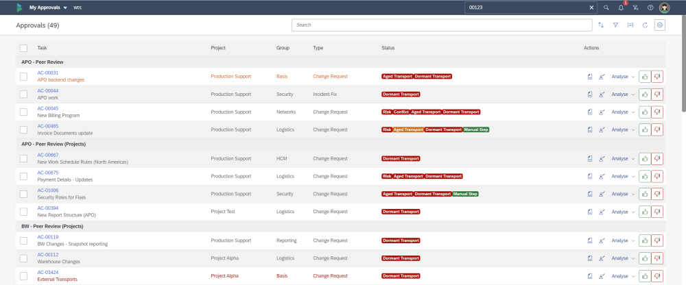 On the Approvals list screen, it is possible to sort and filter and also change the columns that you see in the default view. Free text searching can also be done on the following fields, to filter what is seen on the list screen: