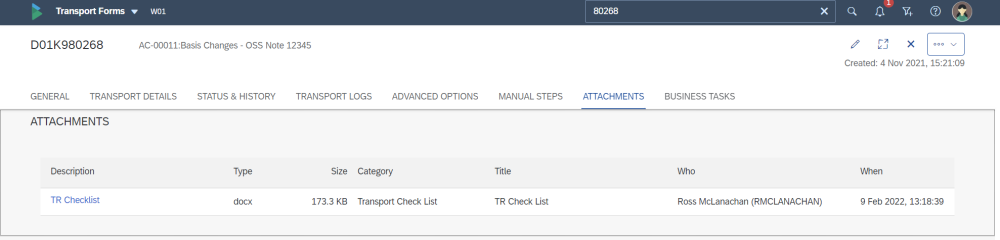 Figure: Attachments on a Transport Form in the Web Platform