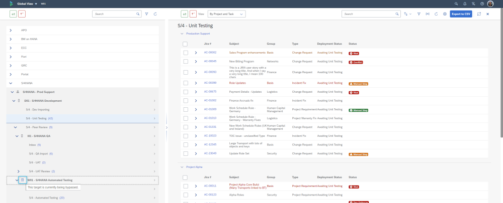 Sometimes an SAP system might be unavailable for planned or unplanned downtime. On such occasions, the ActiveControl Administrator may wish to Bypass this Target within the workflow, to avoid transports getting stuck in the workflow for that target.