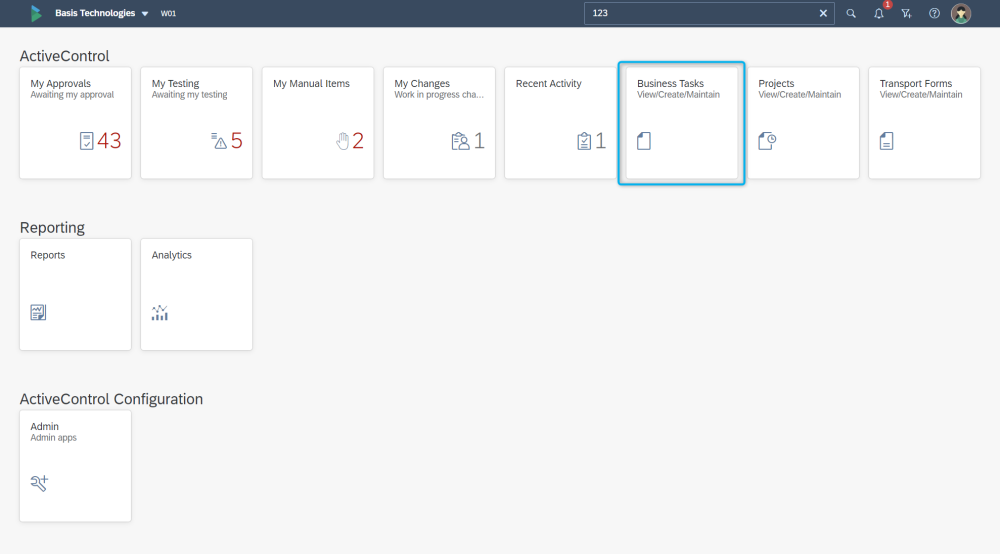 Figure: The ActiveControl Business Task tile