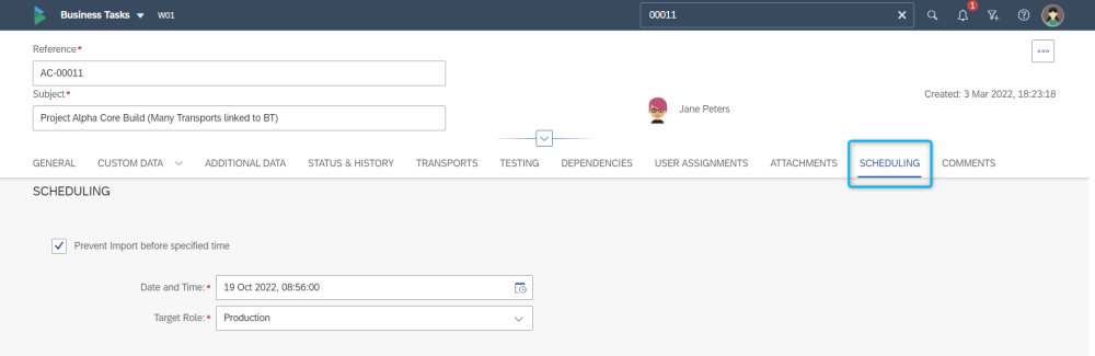 Using the ‘Prevent Import before specified time’ option, a user can ensure a particular SAP change does not get deployed to Production before a certain date/time, irrespective of any Automated Import Schedules that are running on the Production Import Queue(s).
