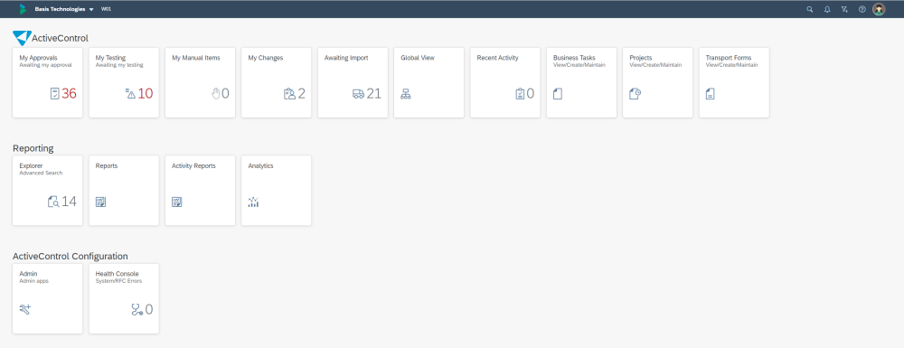 *Users will only see specific app tiles on their home screen, depending on the ActiveControl authorisations that they have been assigned by their local SAP Security Team. For example, Administrators will see certain tiles and be able to accss certain screens that the majority of users will not see.