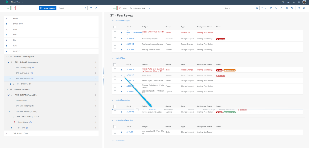 The drag and drop capability within the Global View can be particularly useful when several Transport Forms or Business Tasks need to be moved en-masse, to avoid having to do it one-by-one in the individual Transport Form or Business Tasks.