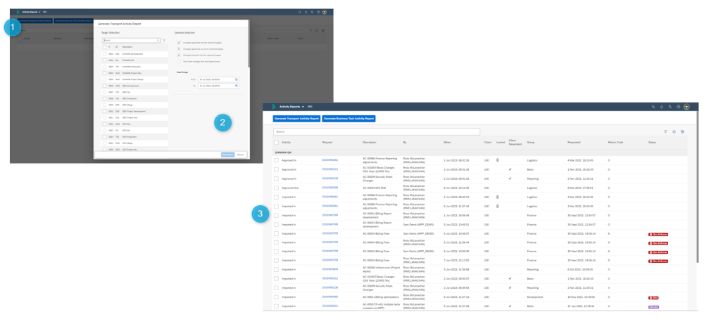 These reports offer ‘interactive online’ capabilties such as the ability to perform actions such as ‘Add to Control Point’ and ‘Add to Import Queue’. As such, these reports are particularly popular with SAP Basis teams as part of system rebuild and refresh activities.