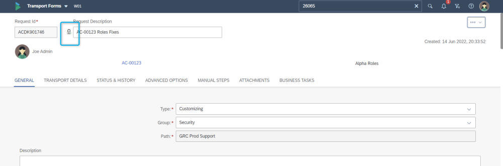 One use case of Transport Form locking is in the event of a possible issue being identified with a transport, to prevent it from inadvertently being moved further forward in the landscape by yourself or somebody else until it has been investigated and resolved (and unlocked again)