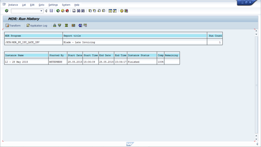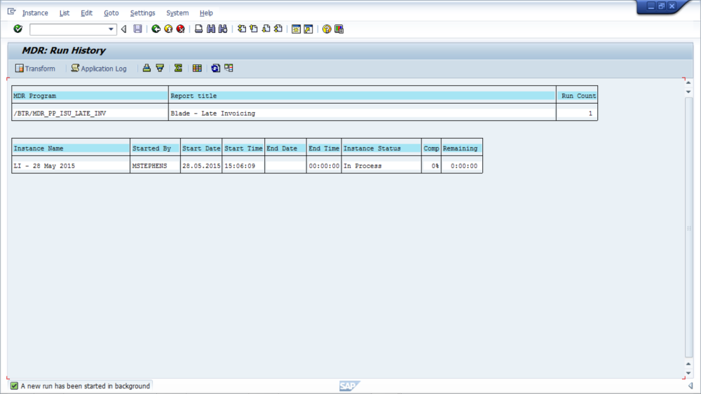 Now you have completed the technical settings by entering the appropriate parameters for the Late Invoice Report, select ‘‘Execute’‘ button.
