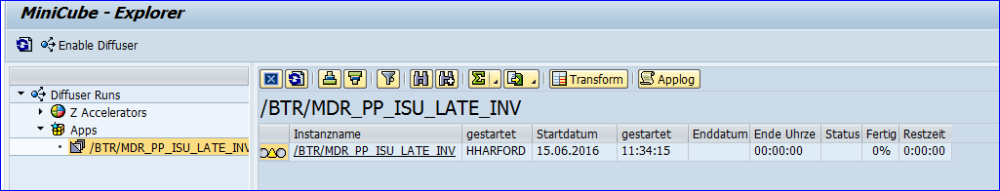 Para ver cuándo ha finalizado la ejecución del informe, seleccione el botón “Refresh” (Actualizar) o “F8” hasta que vea que el informe ha finalizado 100%.