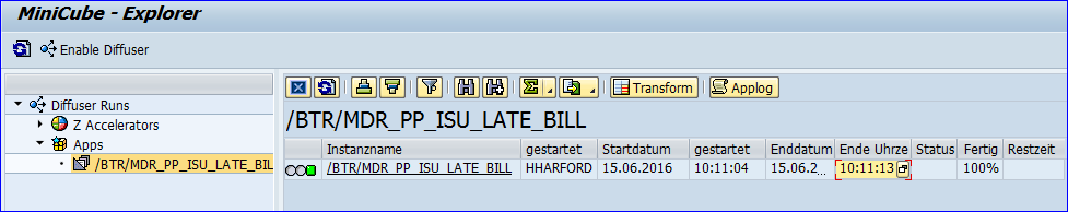 Para ver cuándo ha finalizado la ejecución del informe, seleccione el botón “Refresh” (Actualizar) o “F8” hasta que se pueda ver que el informe ha finalizado 100%.