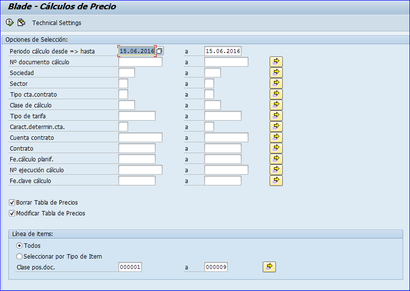 Si se establece para los datos actuales, se utilizará el precio promedio del día de hoy para calcular el precio que se usará en los informes Blade. El Período de Cálculo puede adaptarse para que abarque períodos de precios más extensos a fin de calcular el precio promedio, si se requiere.