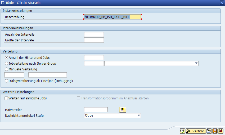 Number of batch jobs across all servers (Número de trabajos por lotes en todos los servidores): Especifica el número de procesos paralelos. Siempre se busca obtener “escalabilidad directa y lineal”; es decir, si se ejecuta un programa con 10 procesos paralelos, entonces debería ejecutarse 10 veces más rápido que con un solo proceso. Asegúrese de que se dispongan de los suficientes procesos de trabajo en segundo plano. Tenga presente que un procesamiento paralelo excesivo puede afectar otros procesos de diálogo y por lotes que se estén ejecutando al mismo tiempo. Este valor dependerá de lo rápido que quiera ejecutar el programa y de cuánta capacidad se dispone al momento de ejecutar el programa.