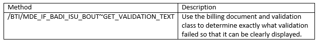 Implement /BTI/MDE_BADI_WR_ISU_BOUT to allow the results of custom validation functions to be reflected clearly.