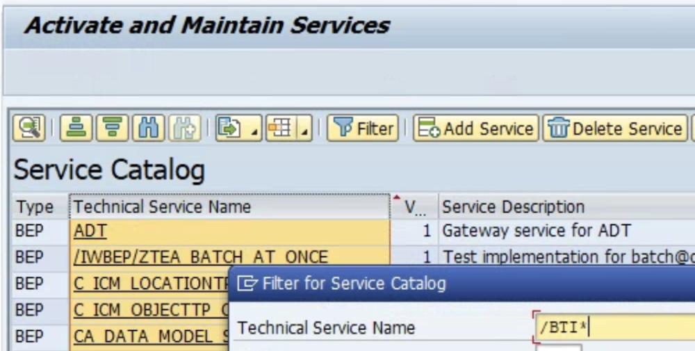 Filter for /BTI/* services: