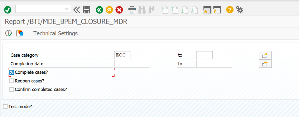 Close case via batch job: /BTI/MDE_BPEM_CLOSURE_MDR.