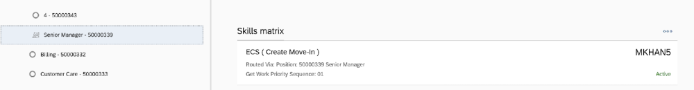 Therefore in this view you can see those skill matrix assignments relating to the org unit or position representing the work queue.