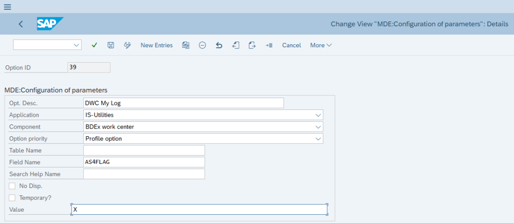 If the option priority is set to Profile. The activation of the My Log can be set for each Profile. This can be updated in the Profile Manager using transaction code /BTI/MDE_PROF_MGR.