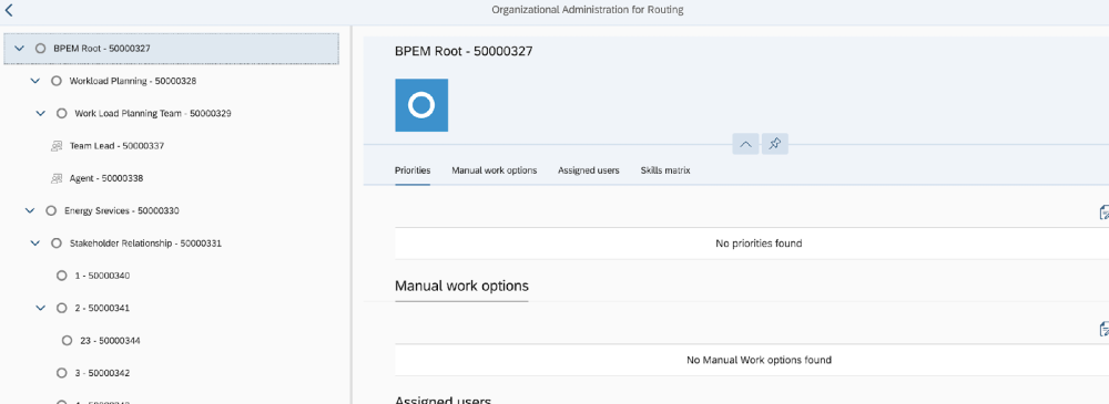All org units and positions under the routing root nodes are displayed here.