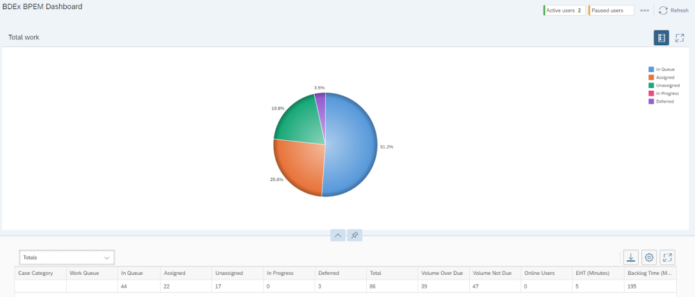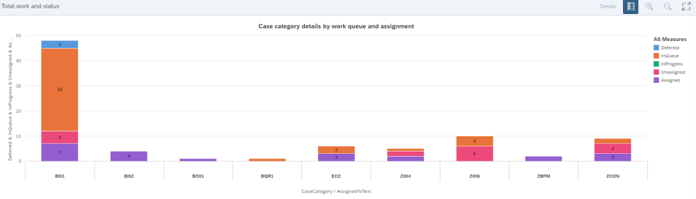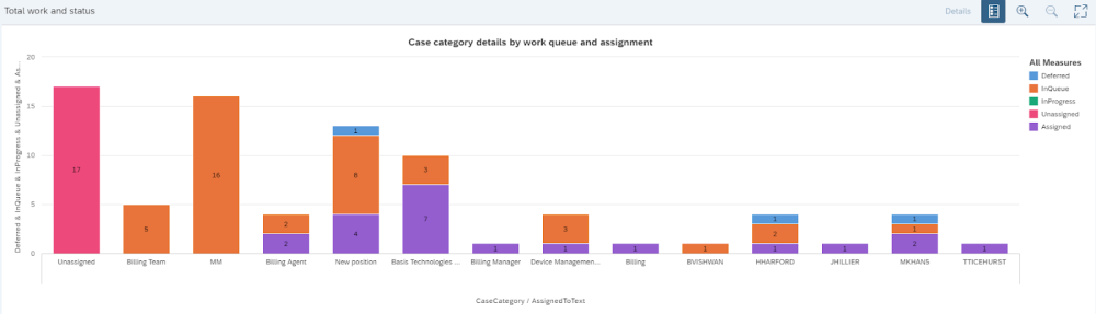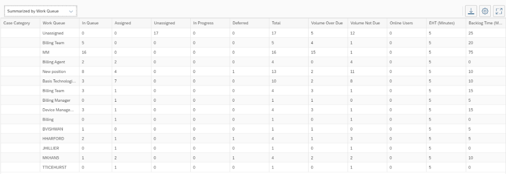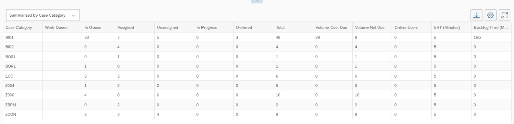 Filters the case category so that you can see the total work assigned to each queue or user.