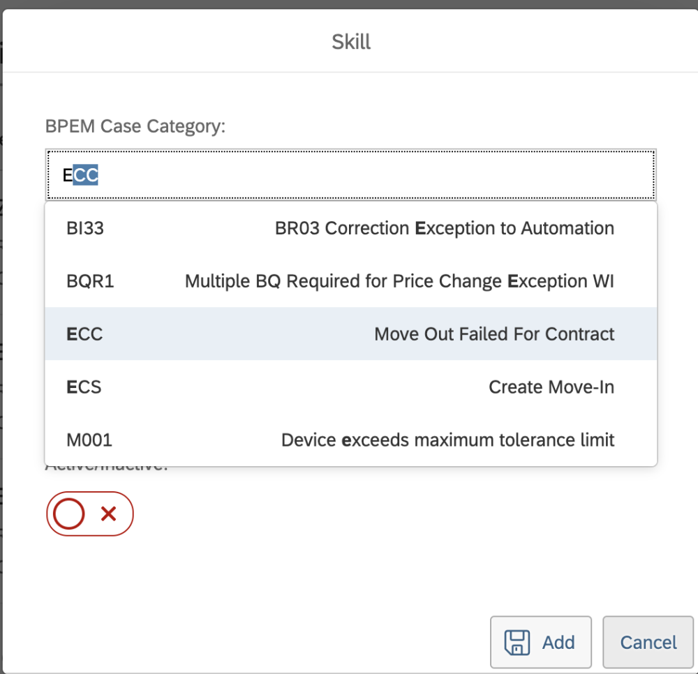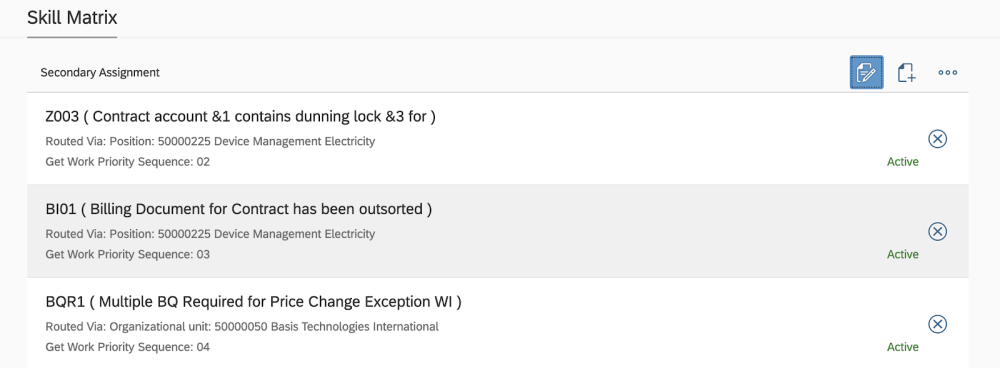 Click Save – the skill matrix entry will be displayed as inactive.