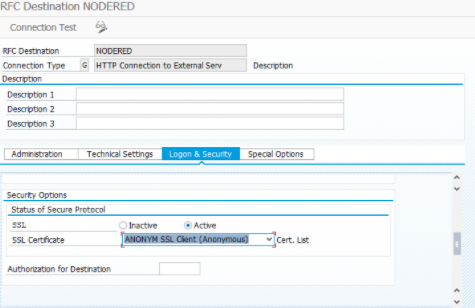 If security basic authentication is required, enter it on the Logon & Security tab.