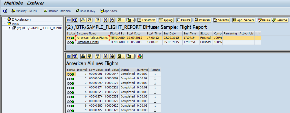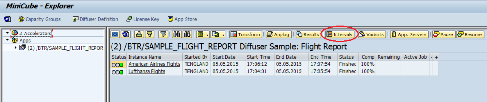 By drilling down on the program name the user will access the programs instance runs. Select an instance and in Diffuser mode double click the instance or click “Intervals” to display the intervals to that specific instance run.