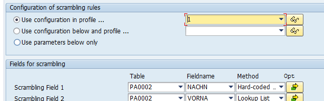 Each field can be scrambled according to different parameters or rules. The options are: