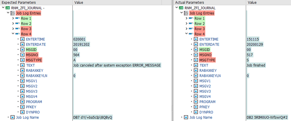 We can see here that in the recording the job was cancelled because it received an error message. However, in the playback the job finished normally. We now need to look at the 3rd row in the job log to see if we can find out more detail about what went on.