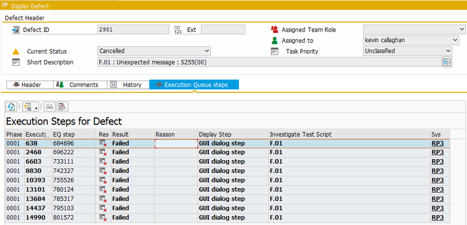 Looking at the Investigate Screen, we can see that in the playback we received the message “Function code cannot be selected”.