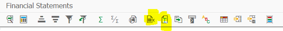 The first of the highlighted buttons is the Microsoft Excel button; the second is the Word Processing button. However, when we run this same transaction on the bot that doesn’t have MS Office installed, you can see that these two buttons are missing:
