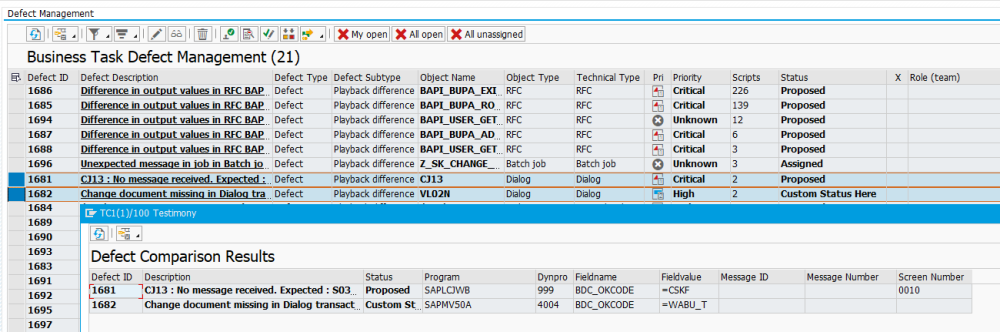 Select defects with Technical Type: Dialog, Control Dialog or Batch job.