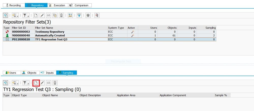 Um eine Stichprobe anzulegen, müssen Sie bereits einen “Repository”-Filtersatz erstellt haben. Wechseln Sie zur Registerkarte Stichproben und klicken Sie auf die Schaltfläche Stichprobe anlegen