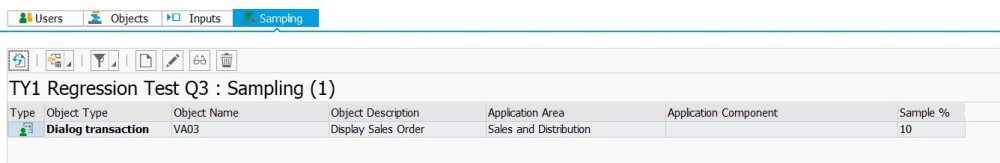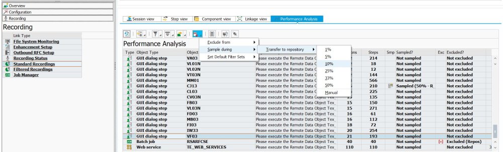 Wenn Sie 1000 VA03-Vorgänge aufgezeichnet haben, können Sie eine Stichprobe von x % abspielen, um die Abspielzeit zu verkürzen. Stichproben funktionieren für: