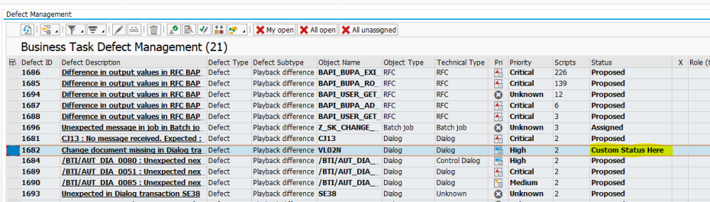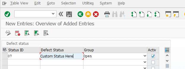 ACTIV flag decides whether the status is in use or not – Deleting from this table is not needed, however allowed (except for “Proposed”, “New”, “Assigned” and “Suppressed”)