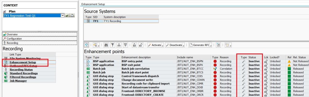 One of the Post-Processing steps is to deactivate the Recording Enhancements on the Source system, but it’s always good practice to doublecheck. Navigate to the Enhancement Setup option within Recording and review the Status. You may need to use the refresh button to get the most-up-to-date status of the enhancements.