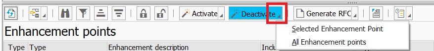 If any are still Active, click on the Deactive button to turn them off. You can also make use of the transaction /BTI/AUT_DEACT_ENH to deactivate the enhancements.