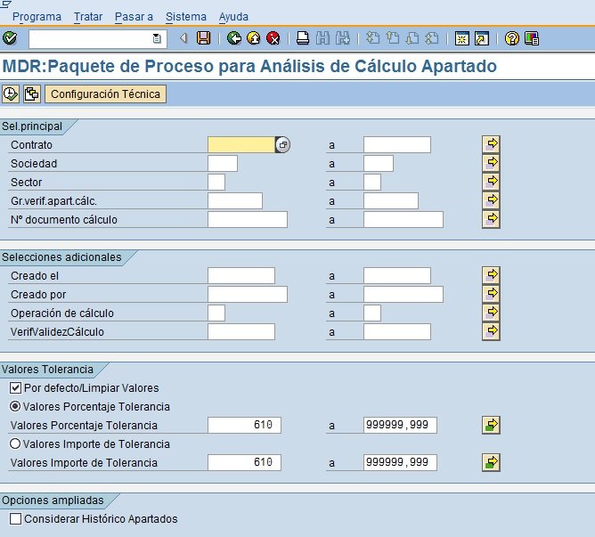 • Transacción de Cálculo: Recupera los documentos de cálculo apartados para el motivo del documento de cálculo especificado (campo ERCH-ABRVORG).