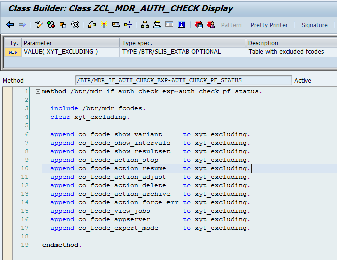 Table XYT_EXCLUDING holds the function code values to be excluded from the Run History screen’s pf-status. Make sure to exclude all function codes under Expert Mode as well as Expert Mode itself (see above). The button will then disappear as seen below: