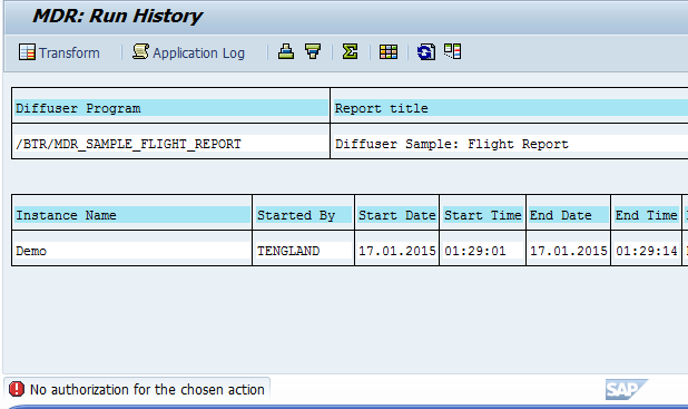 Restricting access to Diffuser Mode on the MiniCube transaction /N/BTR/MINICUBE can be done either by issue of error messages (Type E) or by hiding the Expert Mode button from the tool bar. Note: Both options can be done only at user level and not at program level.